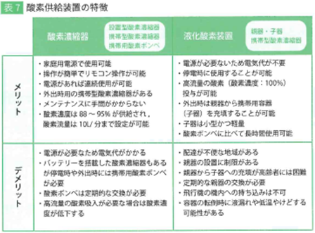 下記に、酸素供給装置のそれぞれの特徴を示します。